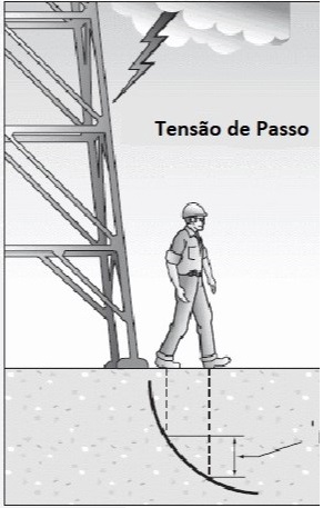 A tensão de passo é a diferença de potencial elétrico entre os pés de uma pessoa que está caminhando ou em pé sobre o solo energizado, próximo a um ponto de descarga atmosférica (raio) ou falha elétrica.